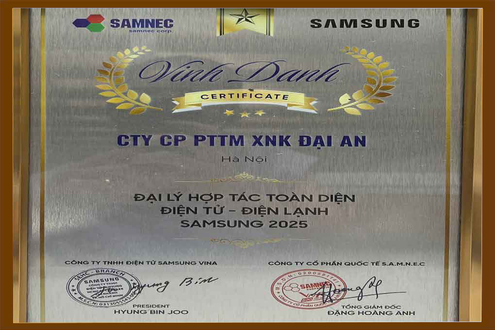 Trong sự kiện quan trọng này, Điện máy AN vinh dự tham dự và tiếp tục được vinh danh “ĐẠI LÝ HỢP TÁC TOÀN DIỆN ĐIỆN TỬ - ĐIỆN LẠNH SAMSUNG 2025” - đánh dấu năm thứ 3