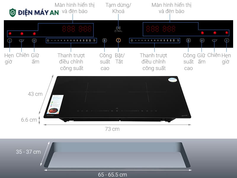 Mặt kính Ceramic Hegon (Đức) chịu nhiệt đến 800°C và chịu lực đến 150kg, mang đến khả năng chống trầy, chống sốc nhiệt tốt, bền bỉ theo thời gian.