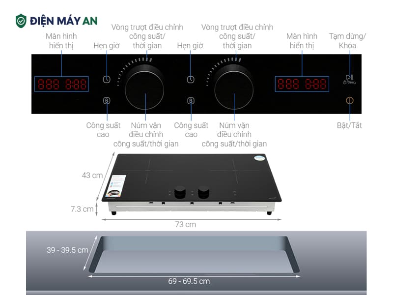 Bếp từ đôi âm có thông số mạnh mẽ: