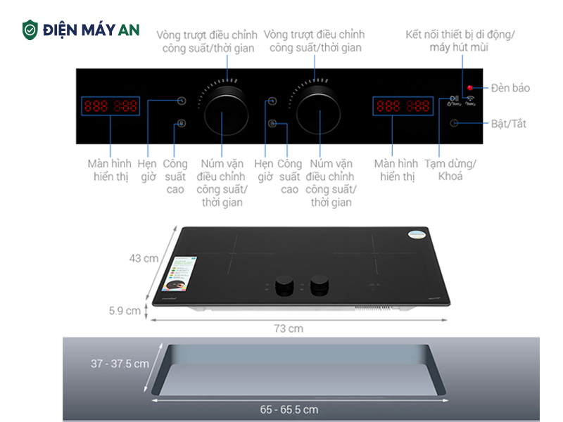 - Mạch bảo vệ IGBT, cảnh báo mặt bếp nóng, khóa bảng điều khiển, cảnh báo nồi chảo không phù hợp.