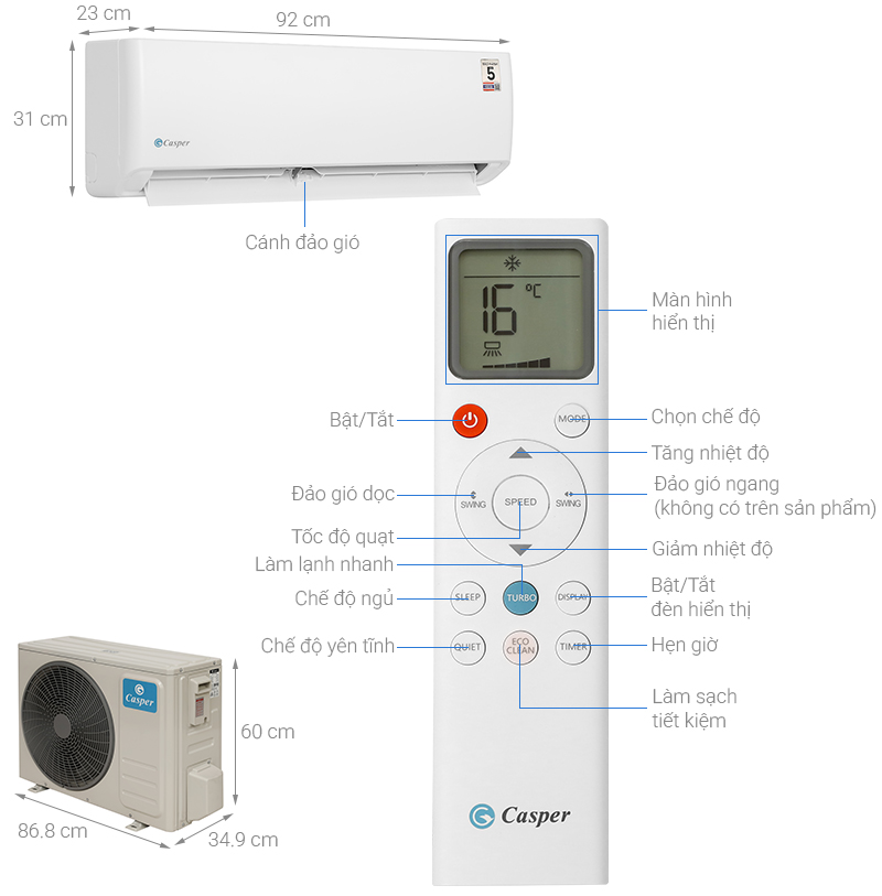 - Công nghệ làm lạnh nhanh Turbo là công nghệ đặc trưng của Casper được sử dụng hiệu quả với chiếc điều hòa 18000 BTU Casper SC-18FB36A, mang đến luồng khí lạnh nhanh chóng, bạn chỉ cần bật máy và nhấn nút Turbo trên điều khiển là có thể dùng một cách đơn giản.