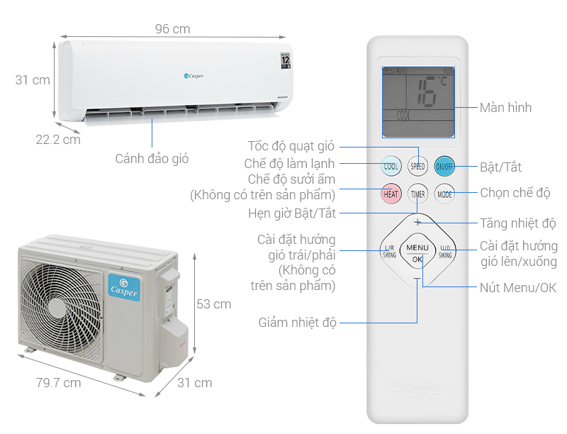 - Điều hòa Casper TC-18IS36 được trang bị cơ chế tự động điều khiển lên xuống và tùy chỉnh hướng gió trái phải, giúp khí lạnh lan tỏa đều trong không gian căn phòng.