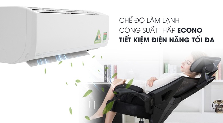 Công nghệ hiện đại này trên điều hòa Daikin Inverter 24000 BTU 1 chiều FTKC71UVMV cho phép máy giảm công suất hoạt động nhưng vẫn không ảnh hưởng tới sự thoải mái của người dùng, góp phần nâng cao hiệu quả tiết kiệm điện hơn.