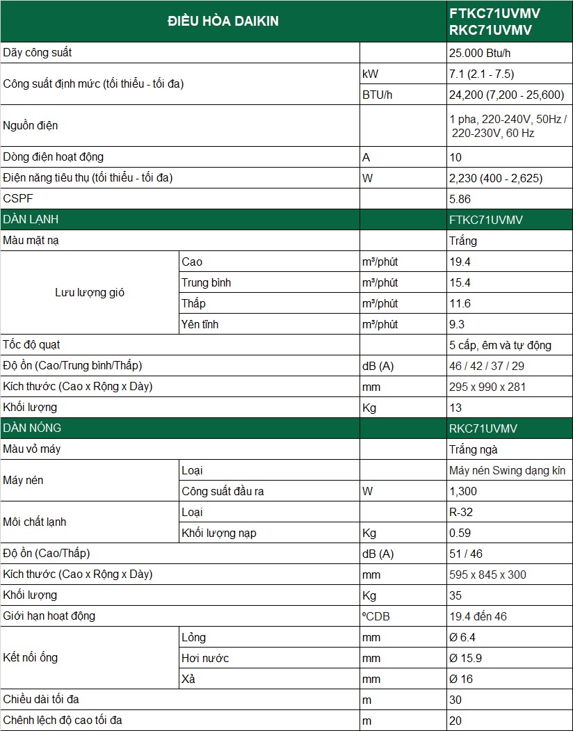 Với công suất 24000BTU, chiếc điều hòa Daikin Inverter 1 chiều FTKC71UVMV này sẽ là lựa chọn rất lý tưởng cho những căn phòng có diện tích dưới 45m2.
