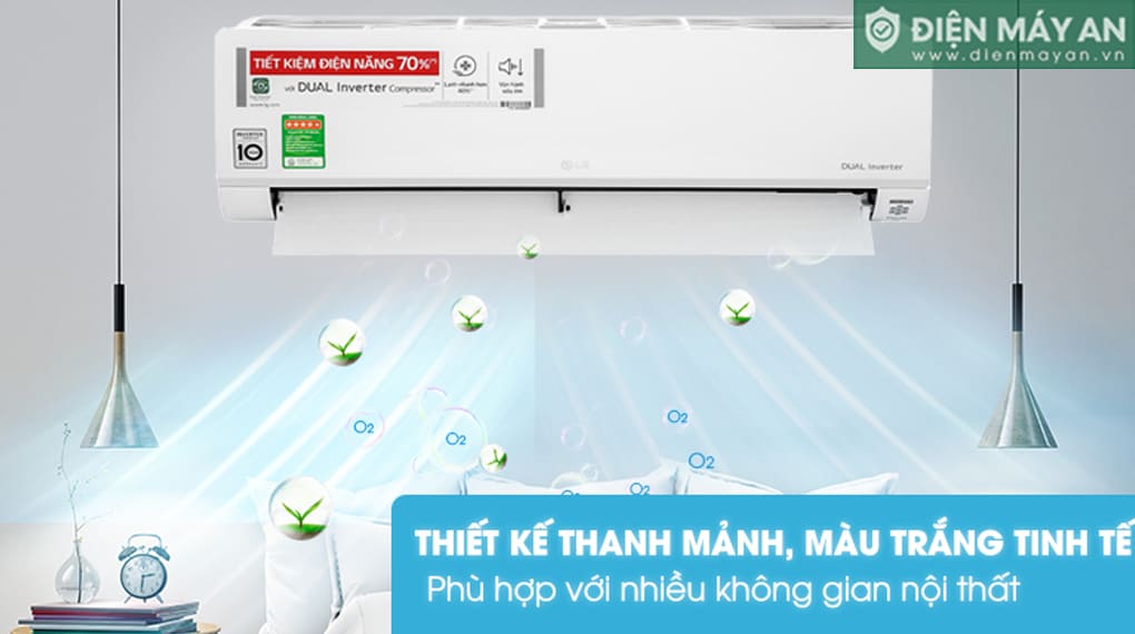 Điều hòa LG Inverter 9000 BTU 1 chiều V10API1 – Làm mát nhanh, tiết kiệm điện, tiện nghi vượt trội. Sản phẩm không chỉ sở hữu thiết kế sang trọng, nhỏ gọn phù hợp với không gian dưới 15m² mà còn được tích hợp nhiều công nghệ hiện đại như Dual Inverter, Jet Cool, kết nối wifi, và hệ thống lọc khí ion. Cùng Điện máy AN tìm hiểu chi tiết về mẫu điều hòa thông minh, hiện đại và đầy tiện ích này!