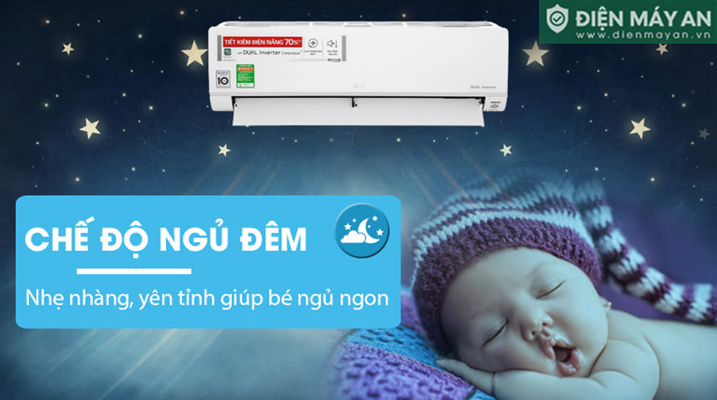 Điều hòa LG V10API1 với chế độ ngủ đêm giúp máy tự động điều chỉnh công suất