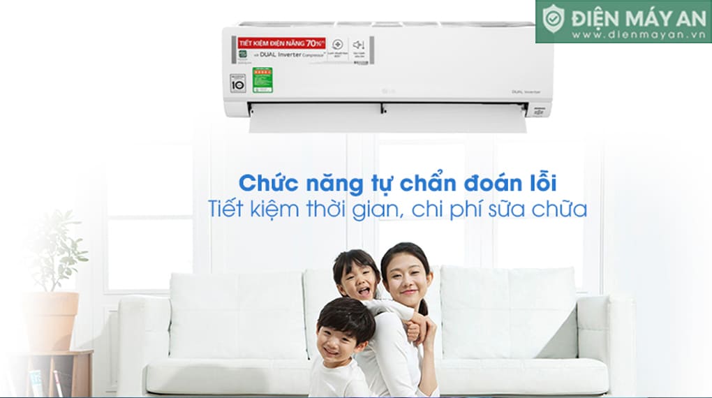 Điều hòa LG Inverter 9000 BTU 1 chiều trong trường hợp mất điện, điều hòa sẽ tự động ghi nhớTính năng tự chẩn đoán lỗi thông minh