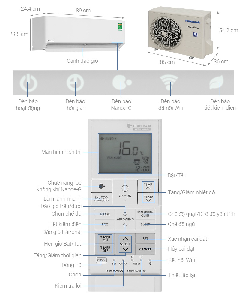 - Điều hòa Panasonic 1 chiều CU/CS-U12BKH-8 tích hợp kết nối WiFi, cho phép người dùng điều chỉnh nhiệt độ, cài đặt chế độ, bật/tắt và hẹn giờ từ xa dễ dàng qua smartphone, mang đến sự tiện lợi tối đa.