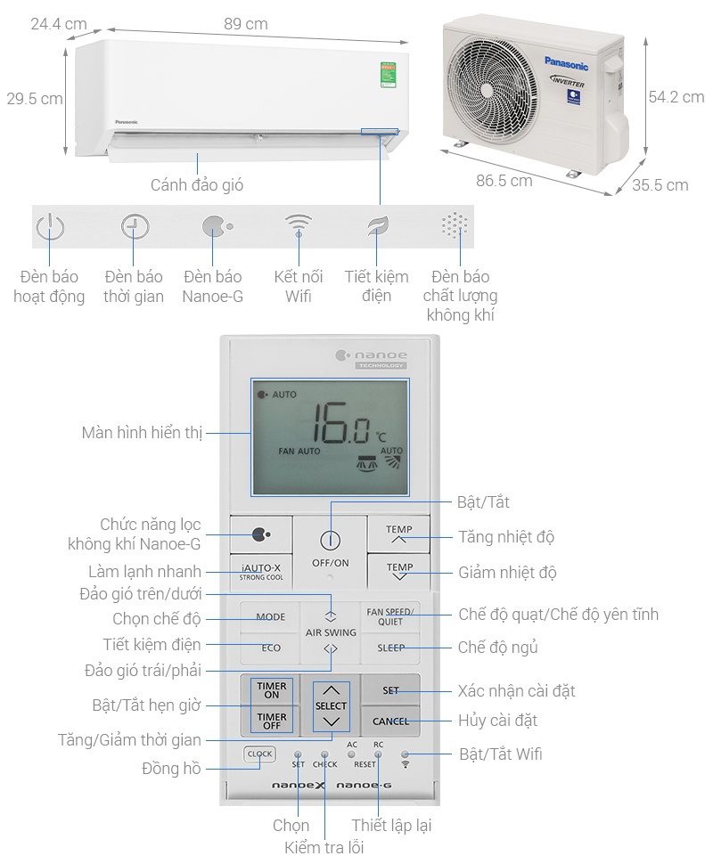 - Nanoe-G: Loại bỏ 99% bụi mịn PM2.5 bằng cách giải phóng ion âm, giữ lại các hạt bụi và đưa về bộ lọc để làm sạch không khí.