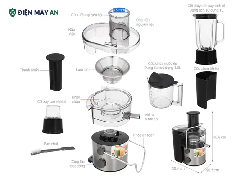 Máy ép trái cây Panasonic MJ-CB800SRA là chiếc máy ép - máy xay 2 trong 1 tiện lợi, mạnh mẽ và an toàn. Với công suất ổn định, thiết kế bền đẹp cùng nhiều tiện ích thông minh, đây sẽ là thiết bị gia dụng xứng đáng có mặt trong bất kỳ căn bếp nào - đặc biệt khi mua online tại Điện máy AN để nhận giá tốt và giao nhanh tận nơi. Liên hệ tới Điện máy AN qua Fanpage hoặc gọi Hotline 099 339 5668 để ring ngay chiếc máy ép tiện ích hiện đại.