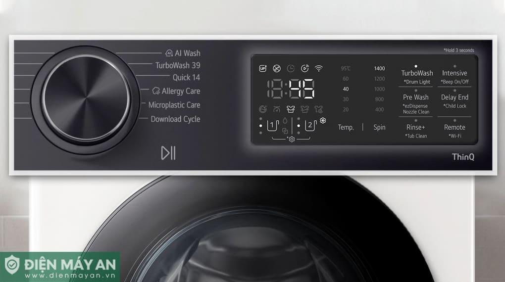 - Cùng với đó, công nghệ TurboWash360 sử dụng 4 tia nước phun mạnh mẽ đa hướng, giúp giặt sạch nhanh chỉ trong 39 phút mà vẫn đảm bảo hiệu quả, tiết kiệm đáng kể thời gian cho người dùng bận rộn.