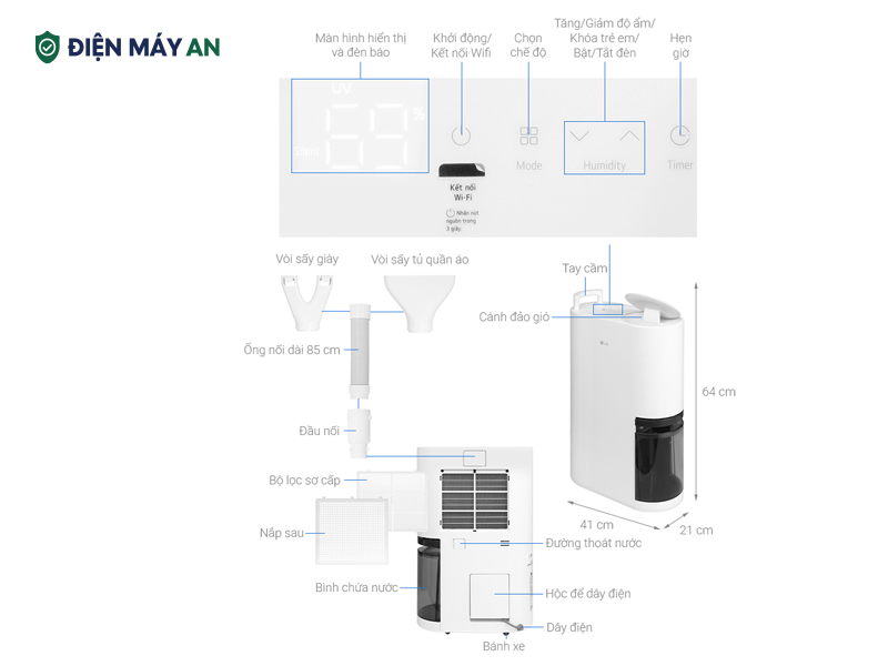 Máy hút ẩm LG Dual Inverter DD20GMWE1.ABAE là giải pháp tối ưu cho gia đình và văn phòng cần kiểm soát độ ẩm cao. Công nghệ Dual Inverter tiết kiệm điện, vận hành êm ái, lọc ion khử khuẩn và loạt tiện ích đa năng giúp thiết bị trở thành lựa chọn đáng tin cậy cho không gian sống khô thoáng và bảo vệ sức khỏe. Liên hệ Hotline 𝟎𝟗𝟗 𝟑𝟑𝟗 𝟓𝟔𝟔𝟖 hoặc Facebook của Điện máy AN để nhận giá ưu đãi ngay hôm nay.