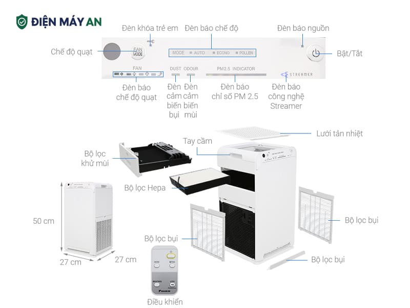 Máy lọc không khí Daikin MC55UVM6-7 37W ra đời như một giải pháp toàn diện để bảo vệ không gian sống luôn lành - sạch trong bối cảnh bầu không khí chứa nhiều bụi mịn, vi khuẩn và tác nhân gây dị ứng. Sản phẩm nổi bật với công nghệ kép Streamer và Ion Plasma độc quyền, giúp phân hủy - vô hiệu hóa - làm sạch hiệu quả đến 99.9% các tác nhân gây hại, mang đến bầu không khí tinh khiết cho gia đình bạn. Cùng Điện máy AN tìm hiểu chi tiết qua bài chia sẻ bên dưới này nhé.