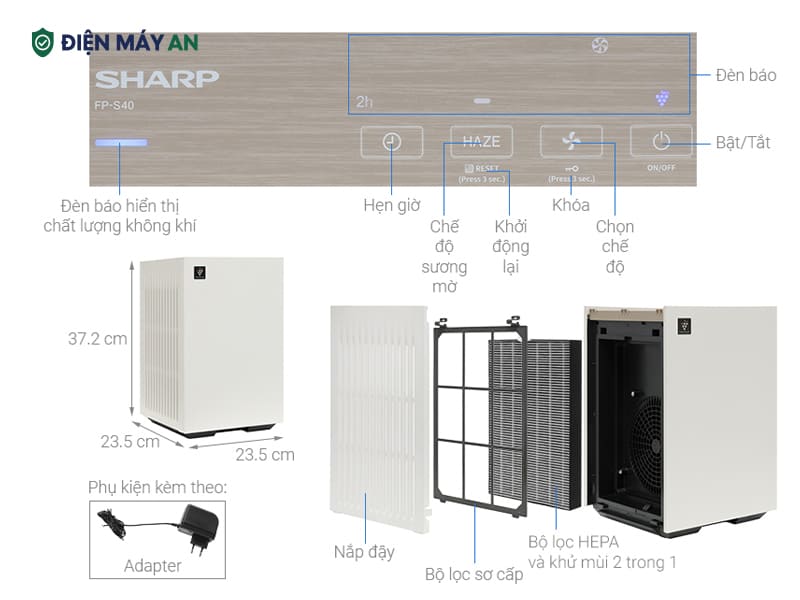 Máy lọc không khí Sharp FP-S40V-W 23W là giải pháp tối ưu cho gia đình nhờ kích thước nhỏ gọn, khả năng lọc bụi siêu mịn và tích hợp nhiều công nghệ hiện đại. Với thiết kế tinh tế cùng hiệu suất đáng tin cậy, sản phẩm hứa hẹn mang đến không gian sống an toàn, trong lành và dễ chịu cho tất cả thành viên trong nhà. Hãy cùng Điện máy AN khám phá ngay những ưu điểm nổi bật làm nên giá trị của chiếc máy lọc không khí này.