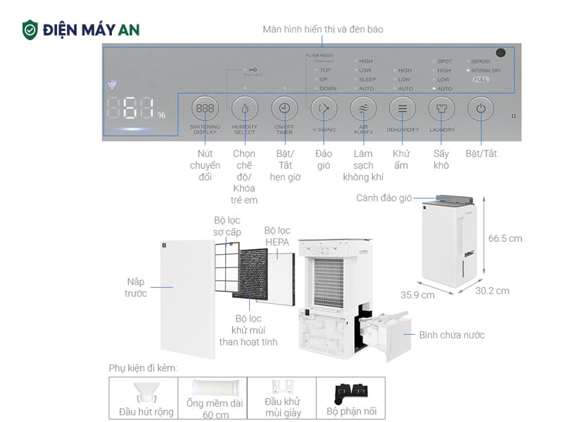 Dehumidify – Hút ẩm: tự động hoặc chọn mức theo nhu cầu