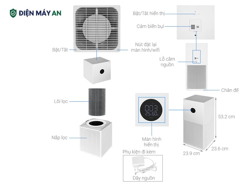 - Loại bỏ đến 99.97% hạt bụi kích thước 0.3 micromet, xử lý tốt bụi mịn PM2.5, phấn hoa, lông thú cưng và các tác nhân gây dị ứng. Than hoạt tính được nâng cấp giúp khử mùi tối ưu, lọc bỏ VOC và các khí độc thường gặp, mang lại bầu không khí trong lành.