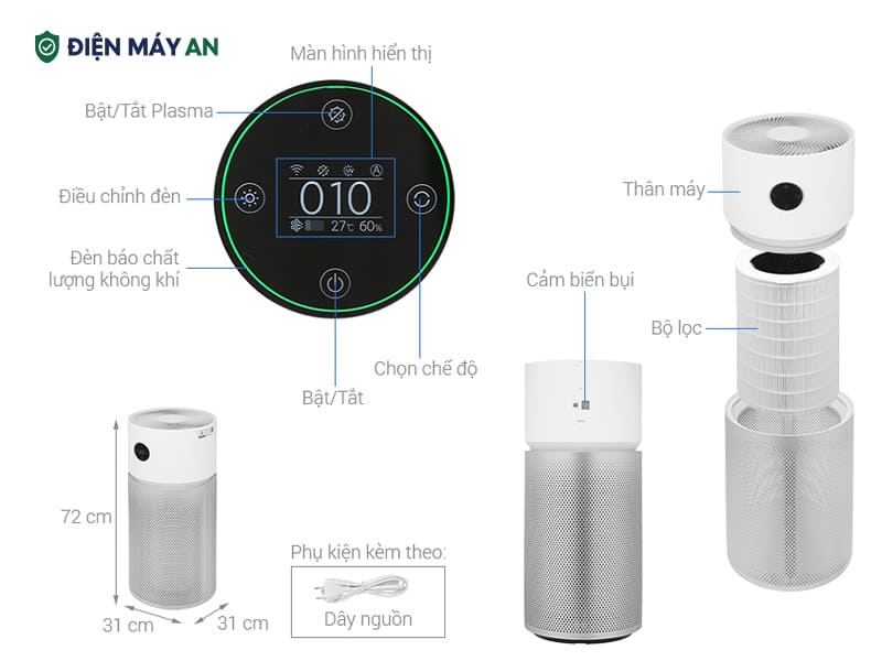 - Song song đó, công nghệ Plasma năng lượng cao tạo ra ion dương – âm liên tục, chủ động phá vỡ cấu trúc vi khuẩn, khử sạch mùi hôi và giảm thiểu tác nhân gây bệnh trong không khí. Công nghệ này có khả năng loại bỏ cả virus cúm A (H1N1), hỗ trợ bảo vệ đường hô hấp hiệu quả cho trẻ nhỏ và người lớn tuổi.