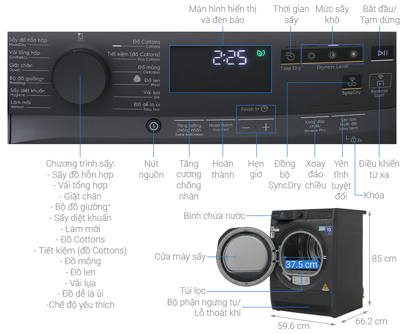- Điều khiển qua ứng dụng Electrolux giúp cho cả gia đình thoải mái điều chỉnh chế độ, theo dõi máy sấy từ xa được hiệu quả hơn.