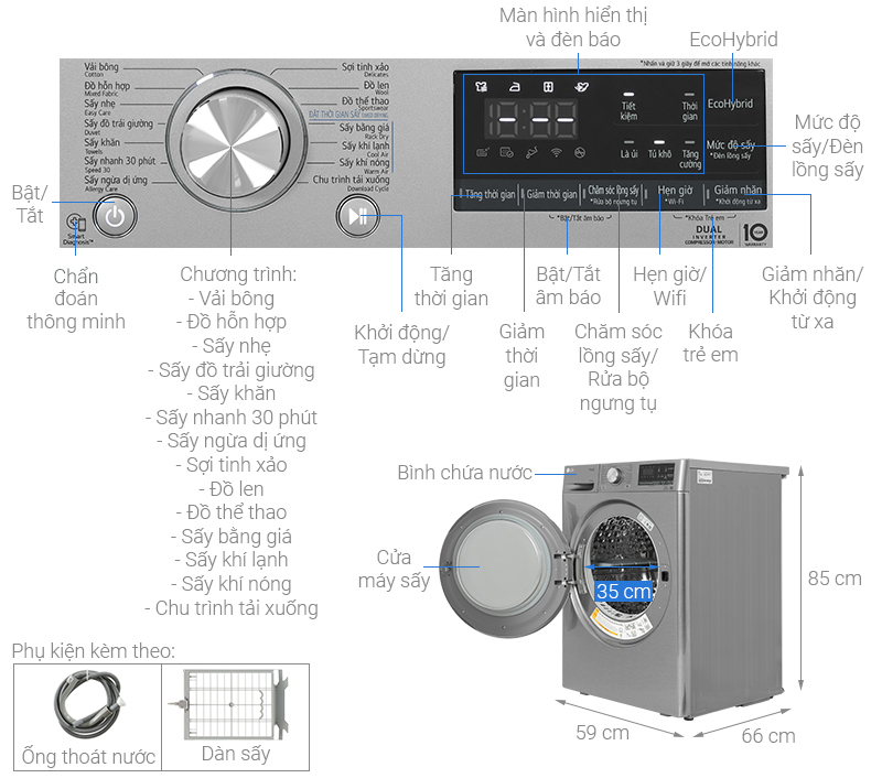 Sự kết hợp giữa dung tích 10.5 kg, công nghệ bơm nhiệt, Inverter và Eco Hybrid khiến Máy sấy bơm nhiệt LG 10.5 kg DVHP50P trở thành giải pháp hoàn hảo cho gia đình đông thành viên mong muốn quần áo luôn khô thoáng, mềm mại mà vẫn tiết kiệm chi phí điện. Liên hệ tại Fanpage của Điện máy AN theo số Hotline 099 339 5668 để được sở hữu thiết bị tiện ích và hiện đại này nhé.