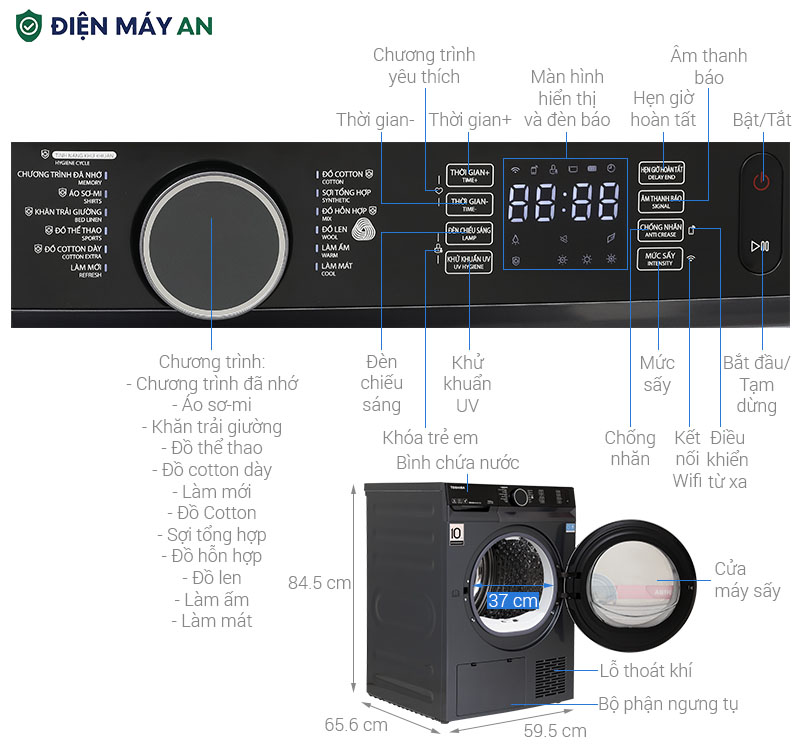 Máy sấy bơm nhiệt Toshiba TD-BP110GHV(MG) không chỉ là thiết bị sấy quần áo thông minh mà còn là trợ thủ giúp chăm sóc trang phục và sức khỏe cả gia đình. Với công nghệ Heat Pump tiết kiệm điện, cảm biến SenseDry, khử khuẩn bằng tia UV và điều khiển thông minh qua TSmartLife, sản phẩm mang lại hiệu quả sấy cao, quần áo mềm mại và thơm tho suốt cả ngày. Liên hệ Điện máy AN ngay hôm nay qua Fanpage hoặc hotline 099 339 5668 để sở hữu thiết bị hữu ích này nhé!