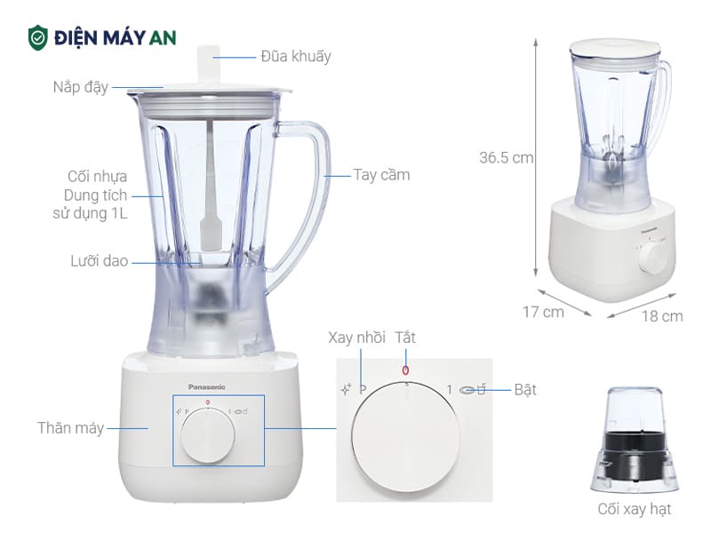 - Sở hữu sắc trắng tinh tế, thân máy gọn gàng, máy xay sinh tố Panasonic MX-EP3111WRA phù hợp cho những gian bếp từ nhỏ đến vừa, giúp tối ưu diện tích mà vẫn giữ được tính thẩm mỹ.