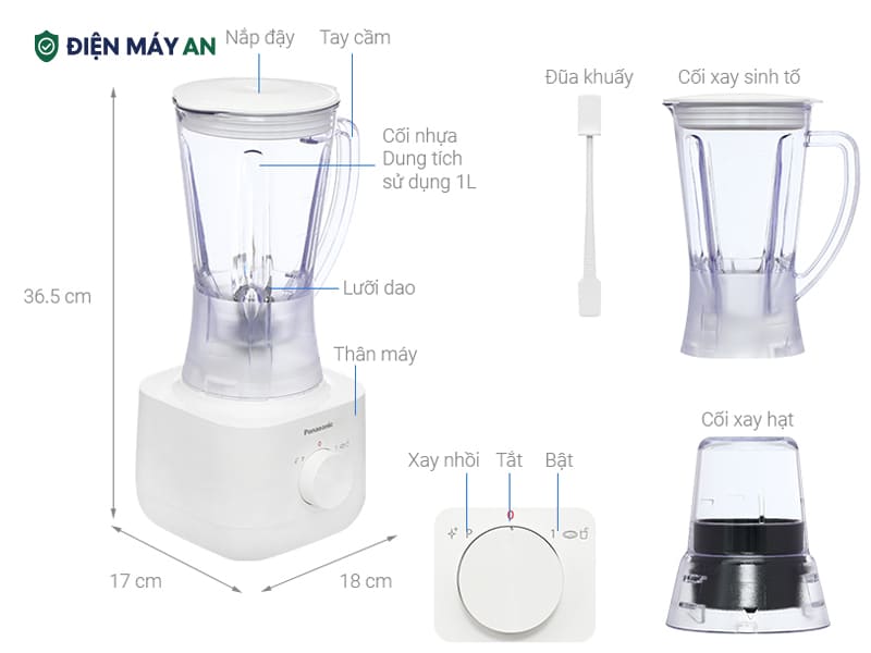 Máy xay sinh tố đa năng Panasonic MX-EP3171WRA là mẫu máy xay đa năng mang thiết kế hiện đại, vận hành ổn định với công suất 230 - 280W và đạt tối đa 450W. Máy hỗ trợ xay nhuyễn nhanh chóng rau củ, trái cây và nhiều loại gia vị, trở thành trợ thủ đắc lực cho mọi gia đình. Cùng Điện máy AN khám phá chi tiết những đặc điểm nổi bật của sản phẩm qua bài viết bên dưới.