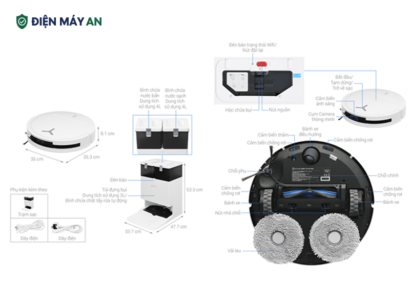 Robot hút bụi lau nhà Ecovacs Deebot T50 Pro OMNI là lựa chọn lý tưởng cho những gia đình yêu thích sự gọn gàng và công nghệ. Thiết kế siêu mỏng 81 mm kết hợp lực hút mạnh mẽ, hệ thống làm sạch cạnh TruEdge 2.0, chống rối ZeroTangle 2.0 và trạm sạc tự động toàn diện mang đến trải nghiệm vệ sinh nhàn - sạch - thông minh mỗi ngày. Liên hệ Hotline 𝟎𝟗𝟗 𝟑𝟑𝟗 𝟓𝟔𝟔𝟖 hoặc nhắn tin ngay cho Facebook Điện máy AN để được tư vấn và nhận mức giá ưu đãi hấp dẫn ngay nhé.