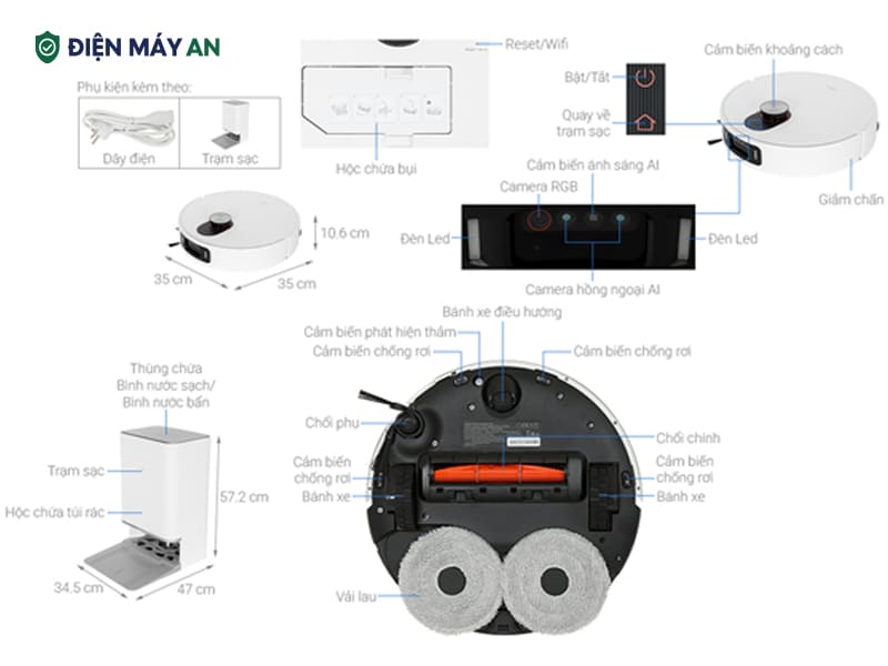 Sở hữu lực hút mạnh mẽ lên đến 20.000 Pa, trạm sạc thông minh có khả năng tự động xả bụi, giặt và sấy khô giẻ lau bằng nước nóng, cùng hệ thống cảm biến AI nhận diện vật cản chính xác và tính năng quan sát không gian qua camera, robot hút bụi lau nhà Xiaomi 5 Pro EU là lựa chọn lý tưởng cho các gia đình bận rộn, nhà rộng nhiều phòng hoặc có thú cưng. Để được tư vấn chi tiết và hỗ trợ nhanh chóng, quý khách vui lòng liên hệ Điện máy AN qua số 099 339 5668 hoặc truy cập Fanpage Điện máy AN.