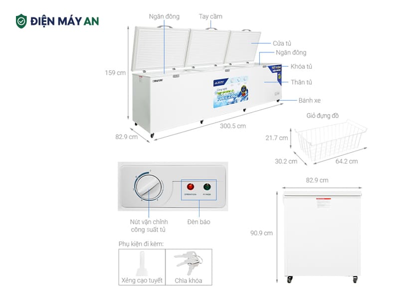 - Tủ đông đi kèm xẻng cạo tuyết chuyên dụng, giúp vệ sinh khoang tủ nhanh hơn, giữ bề mặt luôn sạch và đảm bảo hơi lạnh lưu thông tối ưu.