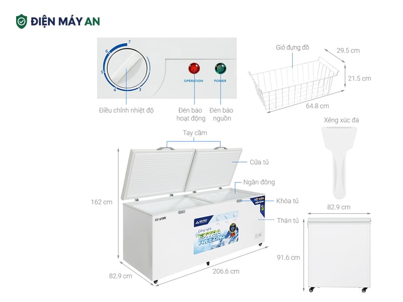 - Xẻng cạo tuyết: Giúp vệ sinh khoang tủ nhanh chóng khi cần.