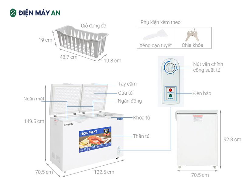 Tủ đông Hòa Phát Inverter 271 Lít HPF BD8271 là dòng tủ đông nằm hiện đại với thiết kế 2 cửa, 1 ngăn đông, 1 ngăn mát giúp người dùng linh hoạt lưu trữ đa dạng các loại thực phẩm. Sản phẩm mang đến khả năng làm lạnh nhanh, vận hành êm ái và tiết kiệm điện vượt trội, phù hợp cho hộ gia đình, quán ăn hay cửa hàng kinh doanh nhỏ. Cùng Điện máy AN khám phá những chi tiết nổi bật của mẫu tủ đông qua bài viết chia sẻ bên dưới.