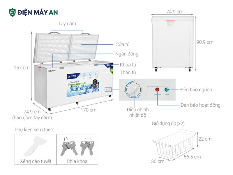- Sản phẩm đi kèm xẻng cạo tuyết chuyên dụng, giúp làm sạch lớp tuyết bám bên trong tủ mà không làm trầy xước bề mặt, giúp duy trì hiệu suất làm lạnh tối ưu.
