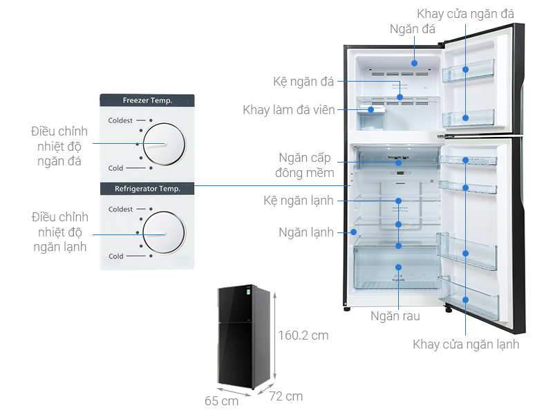 - Dung tích sử dụng 339 lít, phù hợp với nhu cầu sử dụng cho gia đình có từ 3 - 4 người.