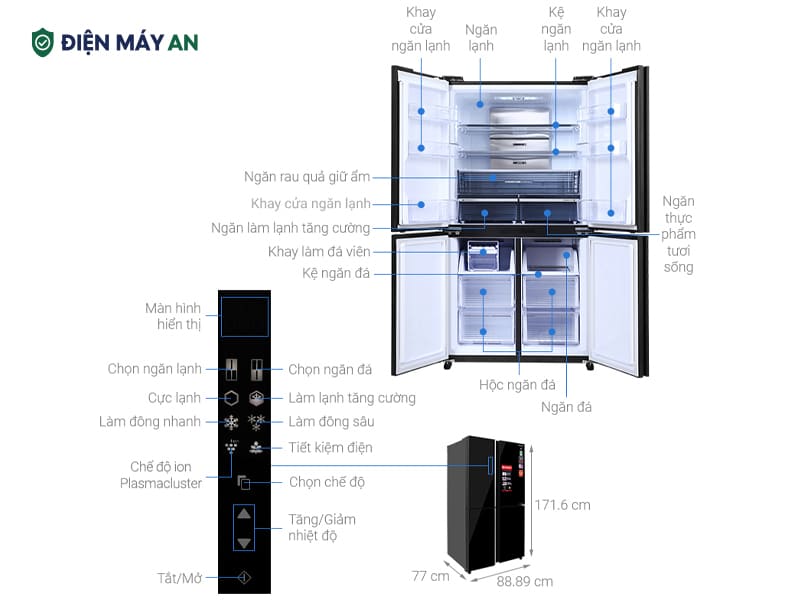 Tủ lạnh Sharp Inverter 525 lít Multi Door SJ-FXP600VG-BK nổi bật với thiết kế 4 cửa màu đen cao cấp, dung tích lớn cùng công nghệ làm lạnh tiên tiến, mang đến giải pháp bảo quản thực phẩm tiện nghi và đẳng cấp cho mọi gia đình. Sản phẩm phù hợp với xu hướng sống hiện đại, khi người tiêu dùng ngày càng ưu tiên những thiết bị gia dụng không chỉ bền bỉ mà còn có tính thẩm mỹ cao và tiết kiệm điện. Hãy cùng Điện máy AN tìm hiểu chi tiết về chiếc tủ lạnh cao cấp này nhé!