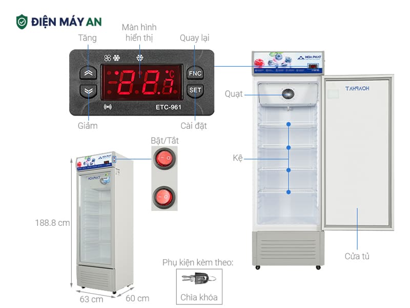 Tủ mát Hòa Phát 280 lít HSR D6280 là lựa chọn lý tưởng cho các cửa hàng nhỏ, quán ăn hoặc siêu thị mini cần thiết bị bảo quản thực phẩm hiệu quả, tiết kiệm điện và bền bỉ. Với thiết kế tinh gọn, công nghệ kính Low-E hiện đại cùng khả năng làm lạnh ổn định, sản phẩm mang đến trải nghiệm sử dụng tiện lợi và chuyên nghiệp cho người dùng. Hãy liên hệ tại fanpage Điện máy AN hoặc gọi điện thoại theo số Hotline 𝟎𝟗𝟗 𝟑𝟑𝟗 𝟓𝟔𝟔𝟖 để được tư vấn chi tiết và “ring” ngay chiếc tủ mát hiện đại, bền bỉ cho gia đình bạn ngay hôm nay.
